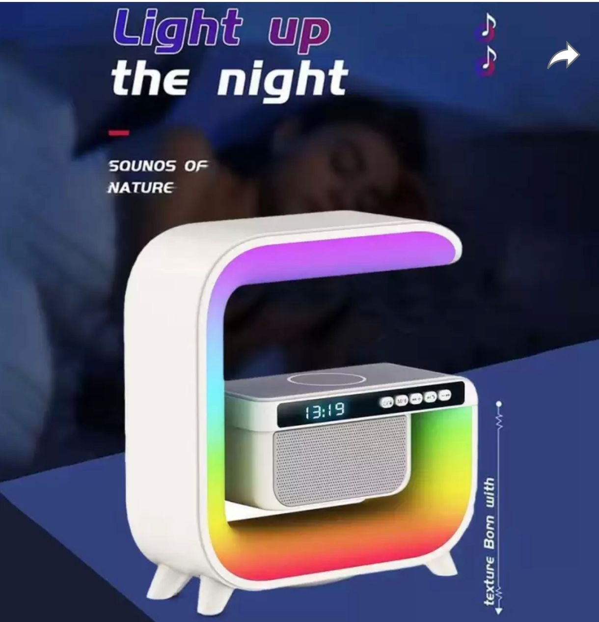 COlSUR LED Wireless Night Light sveglia altoparlante Bluetooth 15W ricarica Wireless per iPhone Android Phone camera da letto decorazione Descrizione Report articolo Utilizzo della ricarica wireless: inserire il caricatore per startizzare automaticamente la ricarica wireless 1. Short press a song Long press volume down 2. Short press pausa/start Long press on/off 3Short press la stampa lunga della canzone precedente per aumentare il volume 4. Short press per controllare la luce, premere a lungo per inserire le impostazioni dell’orologio (premere corto per toggare la luce), impostare l’allarme in una lunga pressa (breve pressione per cambiare il cursore) Parametro tecnico Tipo di batteria: polimero Batteria: 500mah Resistenza dell’altoparlante: 40 Potenza di uscita dell’altoparlante: 3W Potenza di ricarica Wireless: 10W Ingresso alimentazione: DC5V/2A Funzioni principali: BT.TFUSB.AUX Luci colorate charqing wireless Productsize:145mm * 59mm * 155mm Dimensioni altoparlante: 36mm 1 istruzioni Scfety:. 2 si prega di non colpire o far cadere il prodotto quasi per evitare danni manuali 3 quando non è in uso per molto tempo, si prega di spegnere l’alimentazione. Si prega di non essere in contatto con noi, è responsabile per ogni cliente.