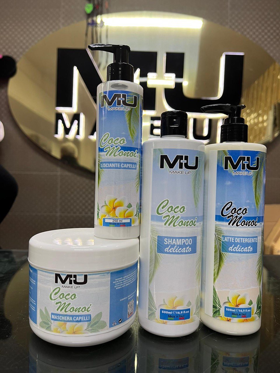 multiset coco monoi uso quotidiano •shampoo 500 ml •maschera 500 ml •lisciante capelli 250 ml •latte detergente maxi 500 ml