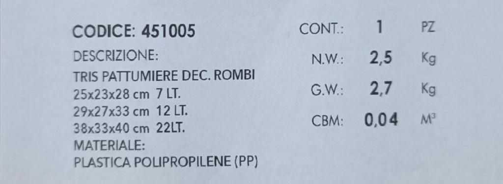 Prodotto precedente Prossimo prodotto Pattumiera tris(3pezzi)€27. 99Campo Input Pattumiera tris(3pezzi) quantità Aggiungi al carrello Categoria: Casa Recensioni (0) RecensioniAncora non ci sono recensioni. Recensisci per primo “Pattumiera tris(3pezzi)” Annulla rispostaDevi effettuare l’accesso per pubblicare una recensione.Prodotti correlati Quick ViewAccessori pulizia casa, Casa, Organizzer Quick ViewManina multiuso gancio 10 pezzi €13. 99Aggiungi al carrello Quick ViewATTREZZI DA LAVORO, Casa Quick ViewMacchina bottoni con 100 accessori €13. 99Aggiungi al carrello Quick ViewCasa Quick ViewBorsa calda €15. 99Aggiungi al carrello